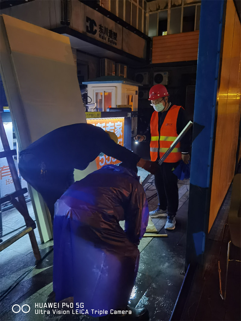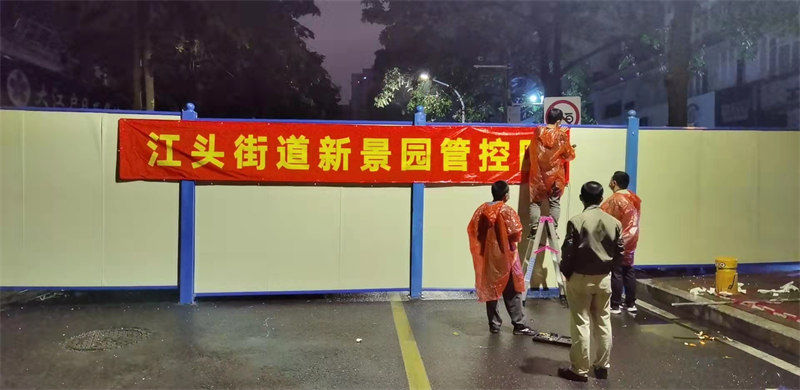 公司成立多支防疫突擊隊,深入動員全體員工積極參與抗疫志愿活動,貢獻(xiàn)綿薄之力,共克時艱。20日23點,公司接到湖里區(qū)建設(shè)局緊急支援抗疫的指令——“快、嚴(yán)、細(xì)”完成呂厝路西端、江頭西路、冠宏花園、新景園等多處圍擋封閉施工任務(wù)。公司迅速響應(yīng)集結(jié),從五緣映月、南山學(xué)校等項目調(diào)配抗疫物資,突擊隊員們雨夜出征鏖戰(zhàn)。