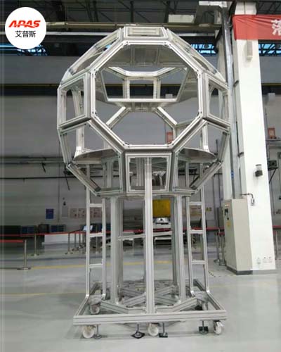 | 2:圖二是利用工業(yè)鋁型材搭建的圓形太空艙模擬裝備,同樣是用于模擬太空艙設(shè)備運(yùn)行數(shù)據(jù)的收集與測(cè)試。 |