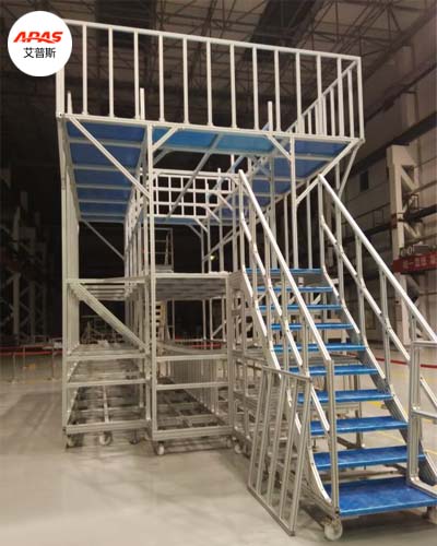 | 3:圖三展示的是模擬太空艙設(shè)備平臺(tái),整體高度7m,承載力4t,上面用于安裝太空艙模擬設(shè)備以及數(shù)據(jù)收集裝備,對(duì)于工業(yè)鋁型材扶梯平臺(tái)的整體承載力和物理性能有較高的要求。 |