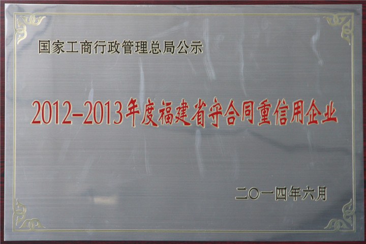 2012-2013年度福建省守合同重信用企業(yè)