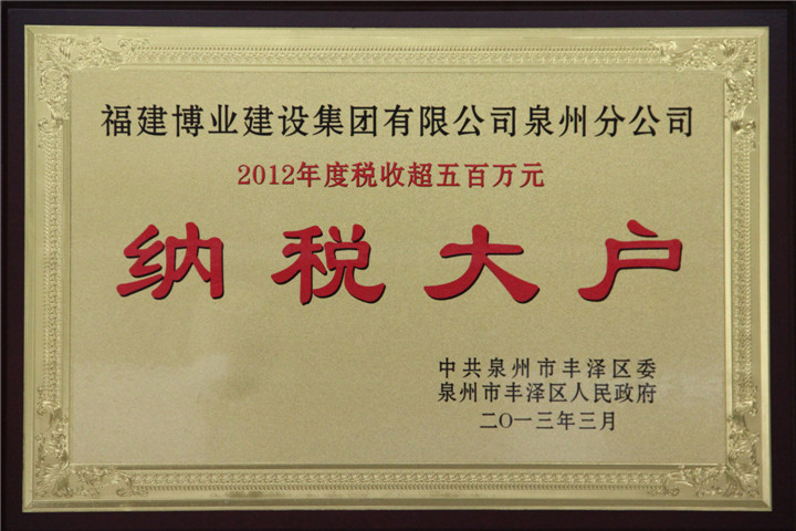 2012年度稅收超過五百萬納稅大戶(泉州市豐澤區(qū))