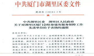 喜訊:我司獲中共湖里區(qū)委、湖里區(qū)人民政府發(fā)文通報(bào)表?yè)P(yáng)