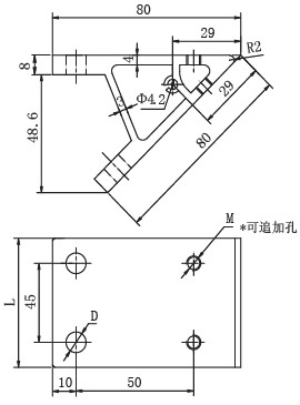 45°型材角件 45系列 長(zhǎng)80mm 寬41mm 槽8 訂貨號(hào):CE-L8080-4541