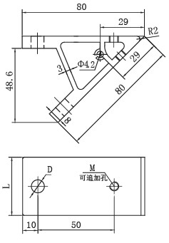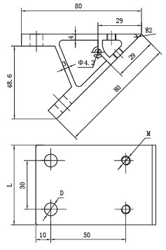 用途:常用于型材與型材45°或135°角連接,起支撐作用,材質(zhì)為擠壓鋁型材,L的長度最長可達(dá)6米,并在側(cè)面有攻絲位置,可用于安裝封板