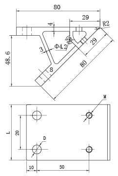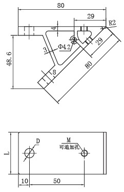 用途:常用于型材與型材45度斜角連接,起支撐作用,材質為擠壓鋁型材,L的長度最長可達6米,側面能攻絲,可用于安裝封板 |