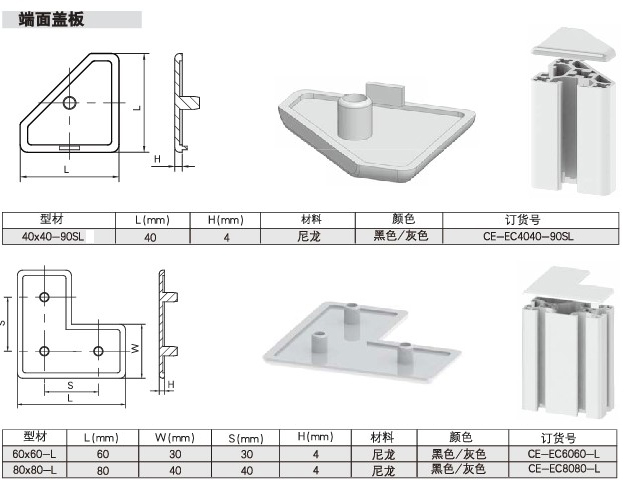 端面蓋板 尼龍 不規(guī)則形狀 顏色:黑、灰