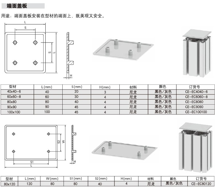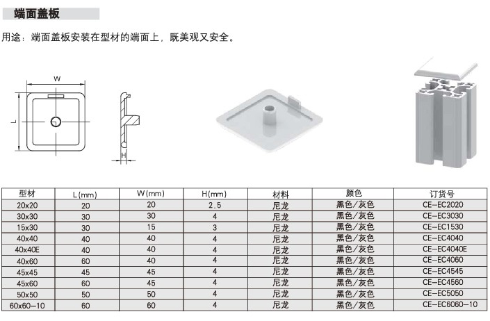 端面蓋板 尼龍 正、長方形 長寬比1:1 3:2