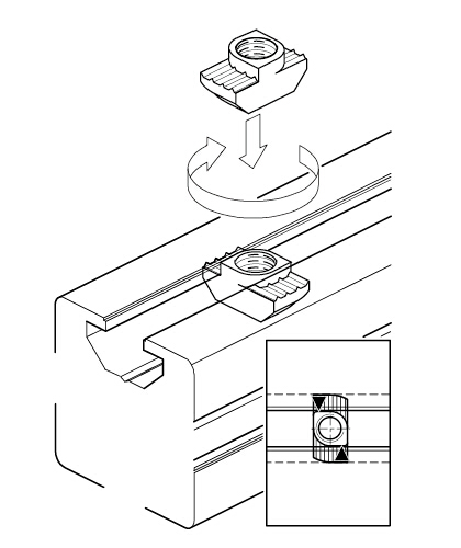 用途:T型螺母塊可將其他連接件簡(jiǎn)單的固定至型材槽坑上,裝配過(guò)程中能自動(dòng)定位、自動(dòng)鎖緊