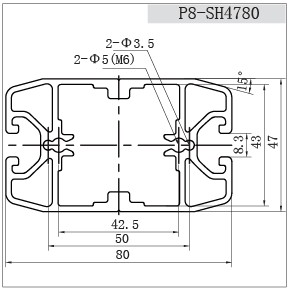 伸縮腳架用型材 P8-SH4780 47*80 氧化銀白